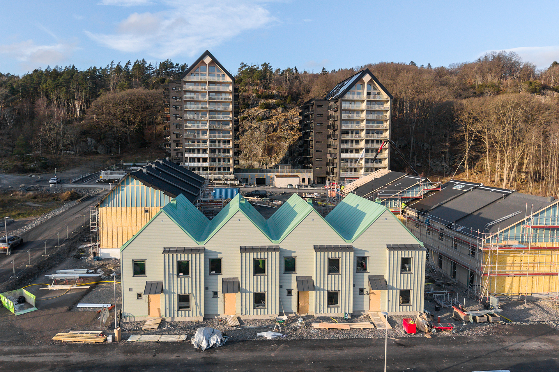 “Vi märker ett stort intresse på visningarna. De som kommer hit och upplever området på plats förstår snabbt vilken kvalitet Skogslyckan erbjuder. Här är det enkelt att få vardagen att fungera. Barnen kan leka på den gemensamma gården, kompisarna finns nära och naturen blir en självklar del av livet. Precis intill Skogslyckan ligger våra två lägenhetshus, Koningsbakkae, där den sista av våra 114 lägenheter såldes nu i höstas. Ett par som köpt en lägenhet där fick nyss sitt första barn och valde nu att köpa ett av radhusen i Skogslyckan efter att ha sett det växa fram intill deras nuvarande boende. Det är ju såklart väldigt roligt när man väljer att göra sin bostadsresa inom våra projekt. Skogslyckan blir ett jättetrevligt kvarter här i Björkris som vi på Trollängen är extra stolta över.” avslutar Andreas.